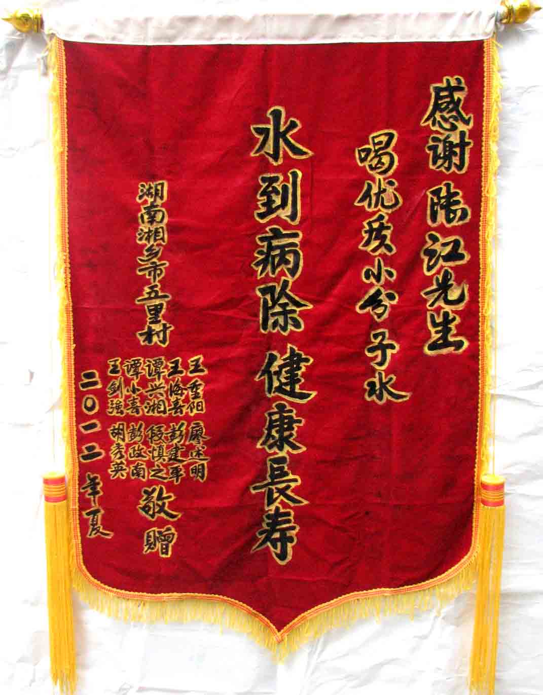2015年潘志山主動(dòng)寫一篇感想《我以親身實(shí)踐打破了冠心病、高血壓、糖尿病需終生服藥的神話》說(shuō)堅(jiān)持按發(fā)明人陸?江先生倡導(dǎo)的用已饑方食的方法合理膳食,我的健康狀況越來(lái)越好:糖尿病造成的視力下降有了明顯的恢復(fù),末梢神經(jīng)炎導(dǎo)致的指端潰爛現(xiàn)在完全痊愈,痔瘡自從飲用微小分子團(tuán)水半年后就再也沒有復(fù)發(fā)過,氣滯血瘀造成的嘴唇暗紫也漸漸變得紅潤(rùn),舌下靜脈黑紫消失,足背的動(dòng)脈由以前的隱約感到跳動(dòng)現(xiàn)在變得清晰有力。[13]潘先生披露的訣竅,一是飲用微小分子團(tuán)水給脫水細(xì)胞補(bǔ)水,二是已饑方食”養(yǎng)生智慧,患者都能做到。